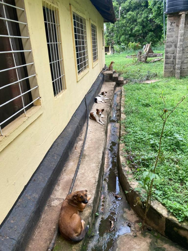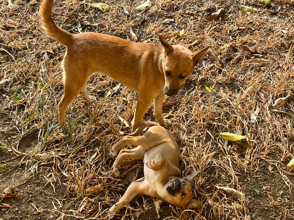 Auf dem Campusgelände leben jede Menge Streuner. Hier haben wir ja auch unseren „Pinsel“ im Alter von zwei Wochen gefunden und aufgenommen. Die Streuner suchen oft nur erstmal einen sicheren Ort, wo sie nicht gleich verjagt, bekämpft oder gequält werden – einfach mal zur Ruhe kommen. Und so liegen oft um unser Haus herum Hunde. In diesem Jahr war eine Mutter mit drei Welpen. Wir begannen sie zu füttern. Mittlerweile gibt es nur noch einen „Welpen“. Mitunter kommen sie heute noch einmal am Tag vorbei.