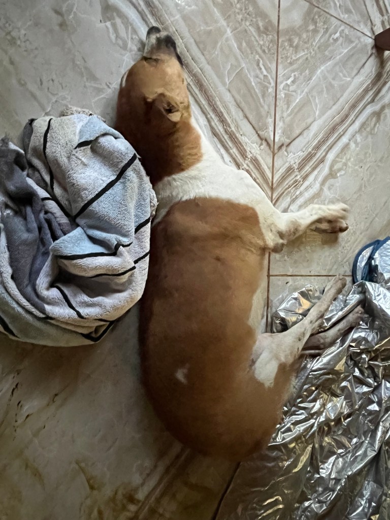 Wir freuten uns, da wir dem Hund nun einen neuen und guten Platz vermitteln können. So machten wir einen Termin mit dem Tierarzt aus, der kam und die Kastration fand im Beisein von Christina in unserer Garage statt. Es verlief alles gut. Da wir nach der OP erstmal auf ein sicheres und sauberes Umfeld achten mussten, richteten wir in der Garage für ihn einen Schlafplatz ein. Dort sollte er eine Woche bleiben, bis eben die Wunde gut verheilt war.