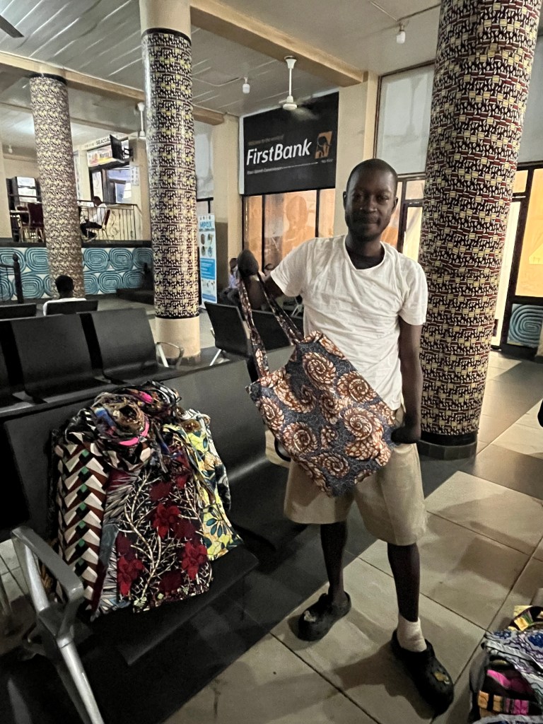 Bei Seacoach halten sich immer einige „Händler“ auf, um ihre Produkte an den Mann/Frau zu bringen. Einer davon ist Musaat. Er verkauft, selbst gefertigte Taschen. Im Bürgerkrieg war er ein Kindersoldat und hat damals beide Hände bzw. die Finger verloren. Sein Wille, sich diesem Leben zu stellen, ist stark. Zusammen mit seiner Familie werden die Taschen genäht und gefertigt. Wer ihm zuschaut, wie er es meistert, die vielen Taschen zu tragen, einzelne davon herunterzunehmen, das Geld zu zählen oder Wechselgeld herauszugeben, ist beeindruckt.