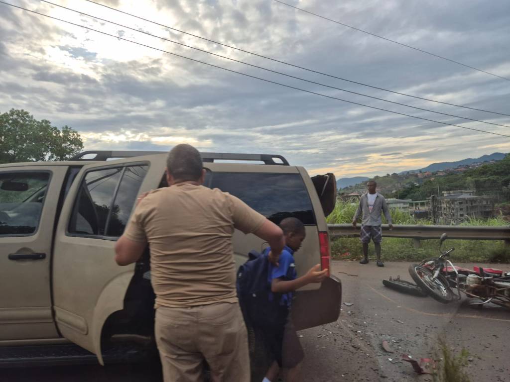 Nach dem üblichen Geplänkel – teilte er mit, dass „eine Straftat, nach Artikel … festgestellt wird!“ „Der Wagen hat an der Seite keine Reflektoren!“ Entweder war sein (oder Ralfs) Englisch nicht ganz so hilfreich, oder sein Anliegen zu offenkundig. Kein Fahrzeug in Sierra Leone hat an den Seiten Reflektoren.