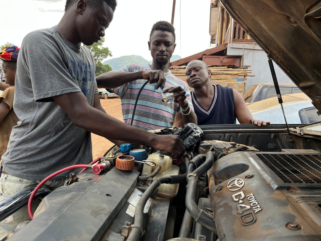 Ein Anruf bei Amadu machte deutlich, dass er nicht zur Verfügung stand. Die bewährte Werkstatt war den Berg runter mitten in Freetown – das „Zuhause Jui“ auf der anderen Seite des Berges und dazwischen Nathanael …