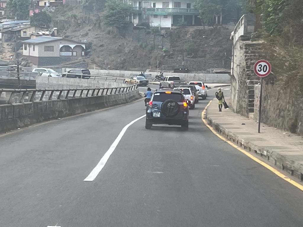 Nach der Stadtgrenze Freetown / Regent gab es deutlich weniger Buden. Menschen und die Straße nicht mehr ganz so belebt – überhaupt hatten wir den Eindruck, dass der Verkehr etwas auf uns abgestimmt war …