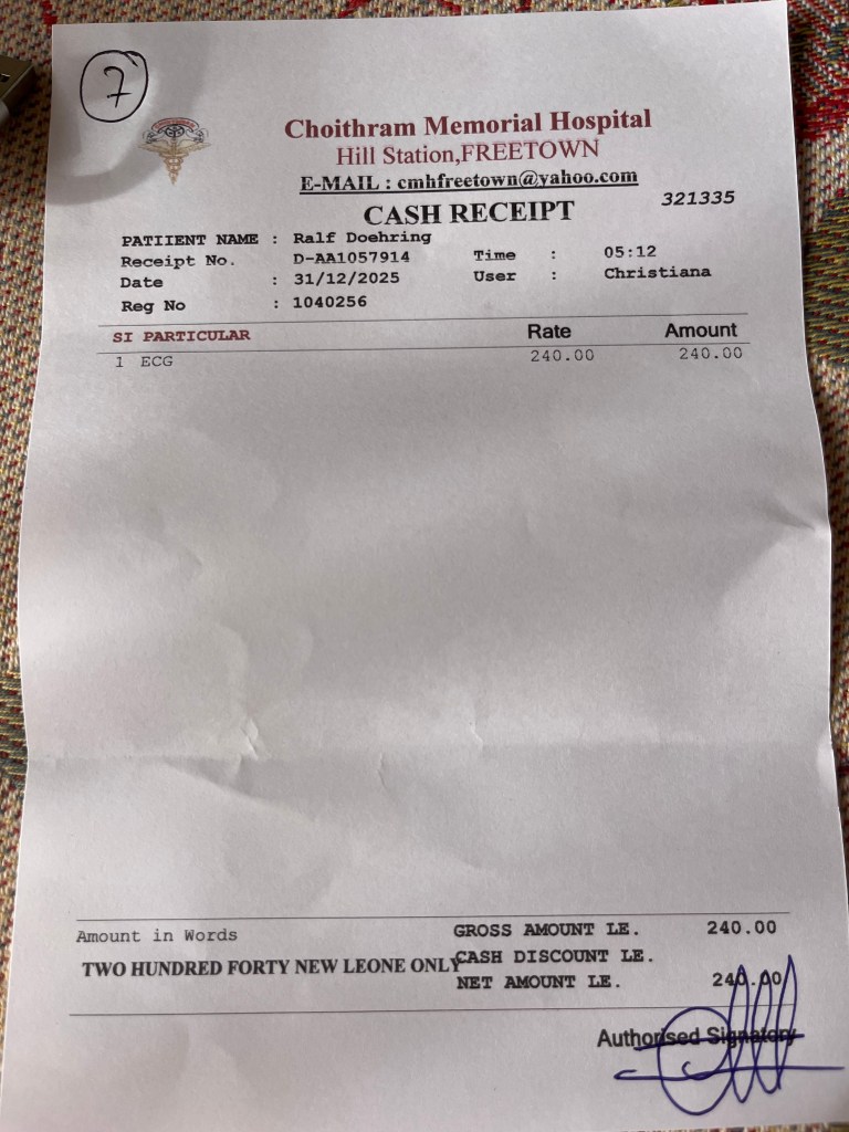Zu Beginn in Sierra Leone musste Ralf die Dosis für Bluthochdruck senken, da hier das Klima eine bessere Durchblutung fördert. So hat er das andere Medikament komplett weggelassen.