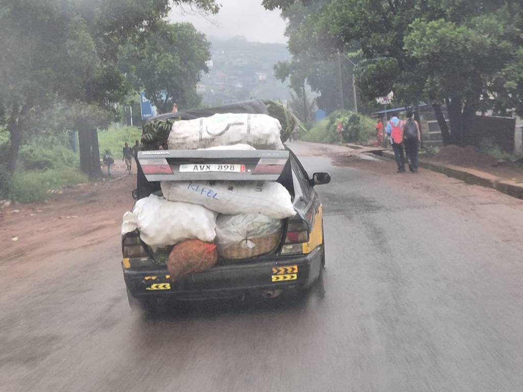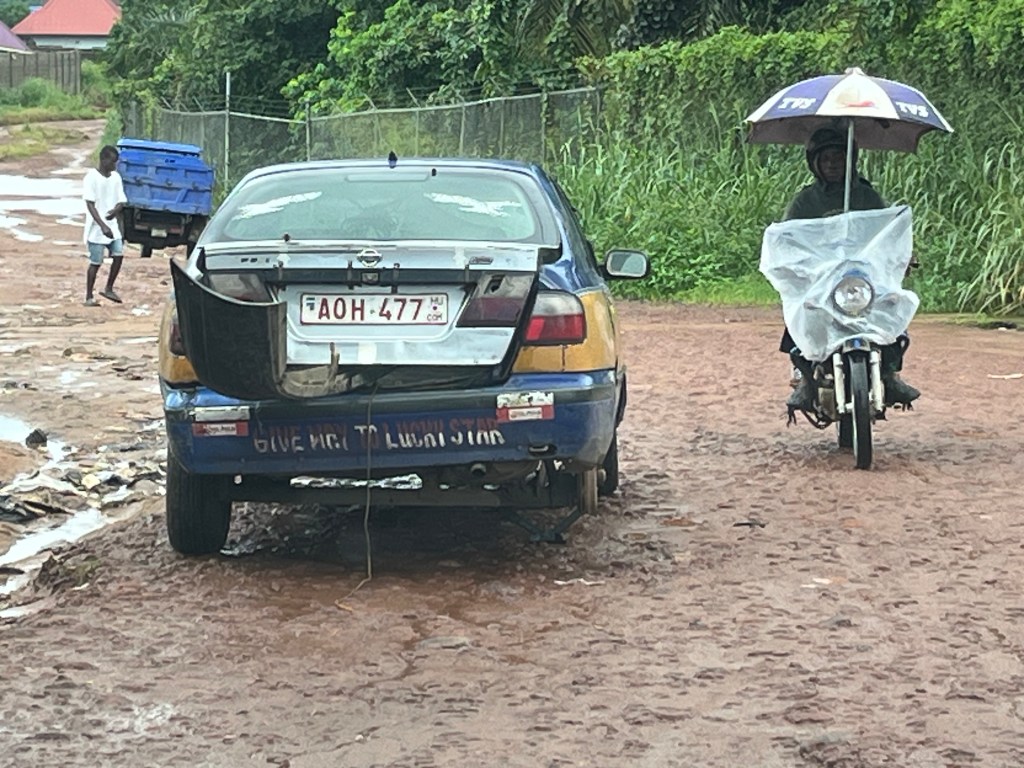 Amadu meinte ,wir sollen ein Taxi nehmen! Bei der Werkstatt lungerte gerade einer rum, der für einen anderen „Unternehmer“ eines dessen Taxis fuhr, und der wäre bereit die Tour nach Freetown und zurück zu machen – für 500 Leones! Amadu war das viel zu teuer, aber Ralf hatte schon die Erfahrung beim letzten Mal gemacht mit dem Keke aus Freetown nach Jui, was ungefähr genauso viel war und das bei einem Keke (was kaum funktionierte) – also willigte er ein. Der Fahrer holte das Taxi und los ging es Richtung Schule.